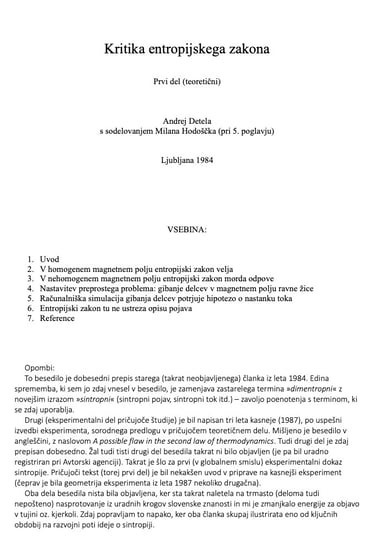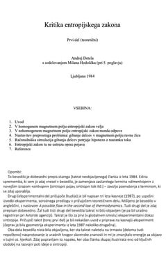 Kritika entropijskega zakona (Andrej Detela, 1984)