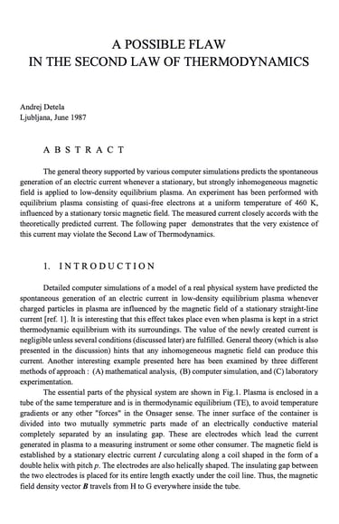 A Possible Flaw in the Second Law of Thermodynamics (Andrej Detela, 1987)